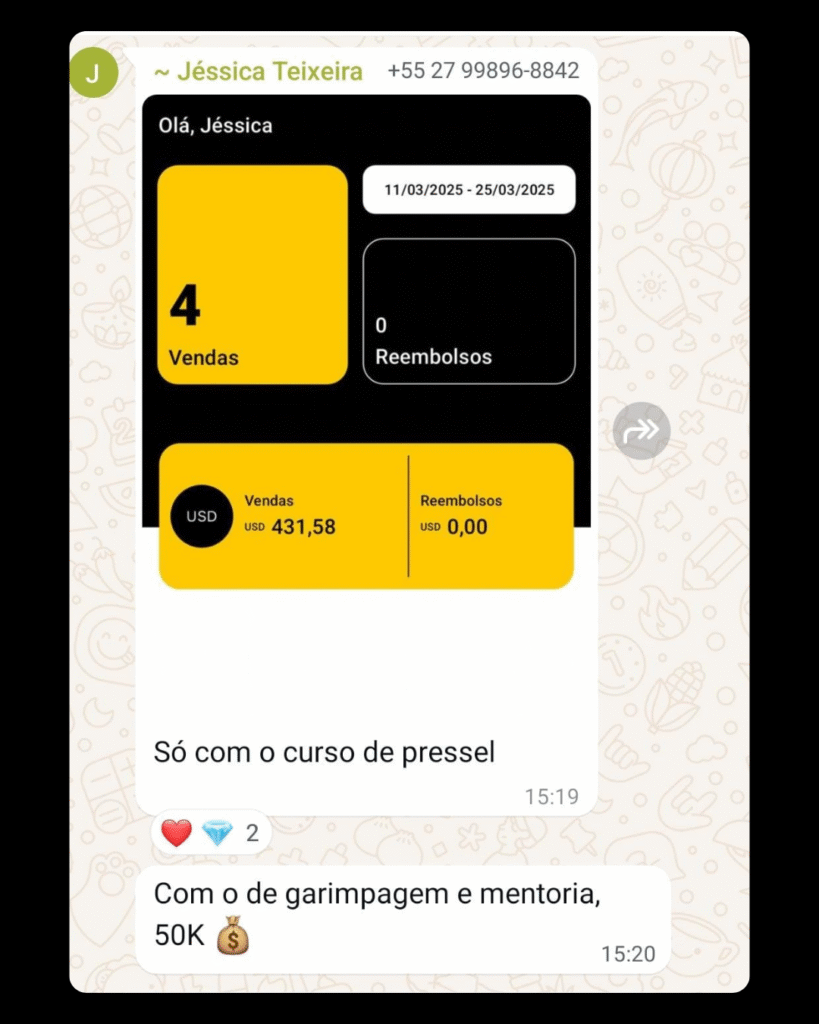Já faturei mais de 800 mil reais de forma extra, utilizando estratégias inteligentes e comprovadas no marketing digital. Além disso, sou empresário e também atuo no segmento de aplicativos de delivery, o que me proporciona uma visão ampla sobre negócios e inovação.