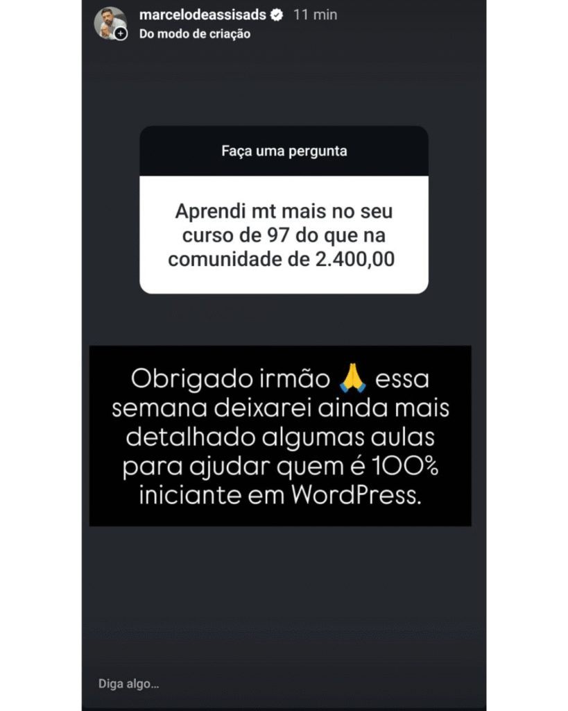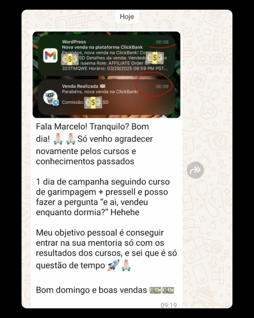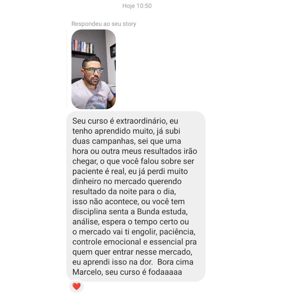 Olá, meu nome é Marcelo de Assis e, há mais de 3 anos, atuo no mercado de afiliados, sendo especialista na estratégia de Review na rede de pesquisa do Google Ads há mais de 2 anos. Durante esse período, trabalhei 100% focado na estratégia de Review, refinando métodos e ajudando mais de 490 alunos ao redor do mundo a alcançarem resultados expressivos aplicando essa técnica validada.