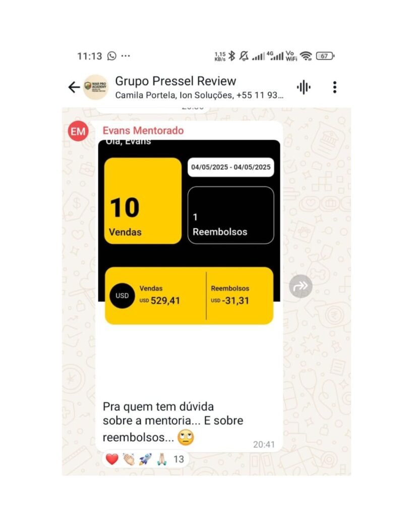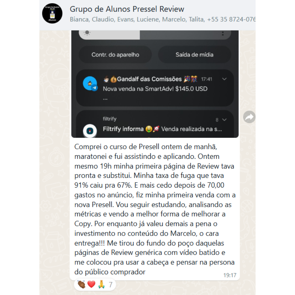 Diversos depoimentos de quem comprou o curso de Pressel para Review e aplicou o modelo que ensino.
